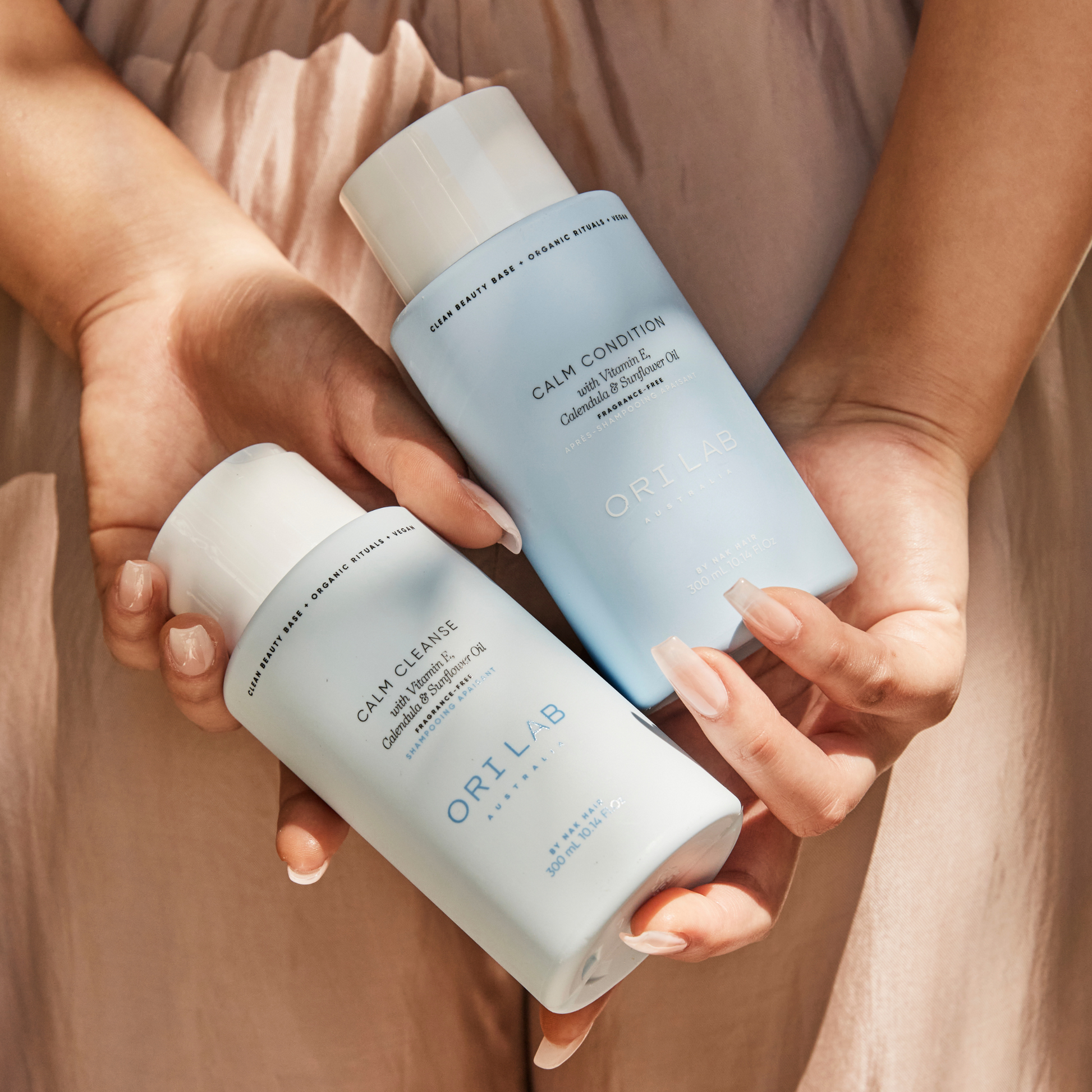 Cleanse Ritual • ORI Lab is designed for a double cleanse experience. Begin your first cleanse by placing a generous amount of product into the palm of your hands and emulsify. Apply to wet hair and work into a gentle lather. Rinse thoroughly. Cleanse again, leaving the product to soak for one minute to allow the bespoke formula to absorb into hair strands and scalp. Take this moment to indulge in the ritual of scalp massage. Rinse thoroughly, follow with Calm Condition.
