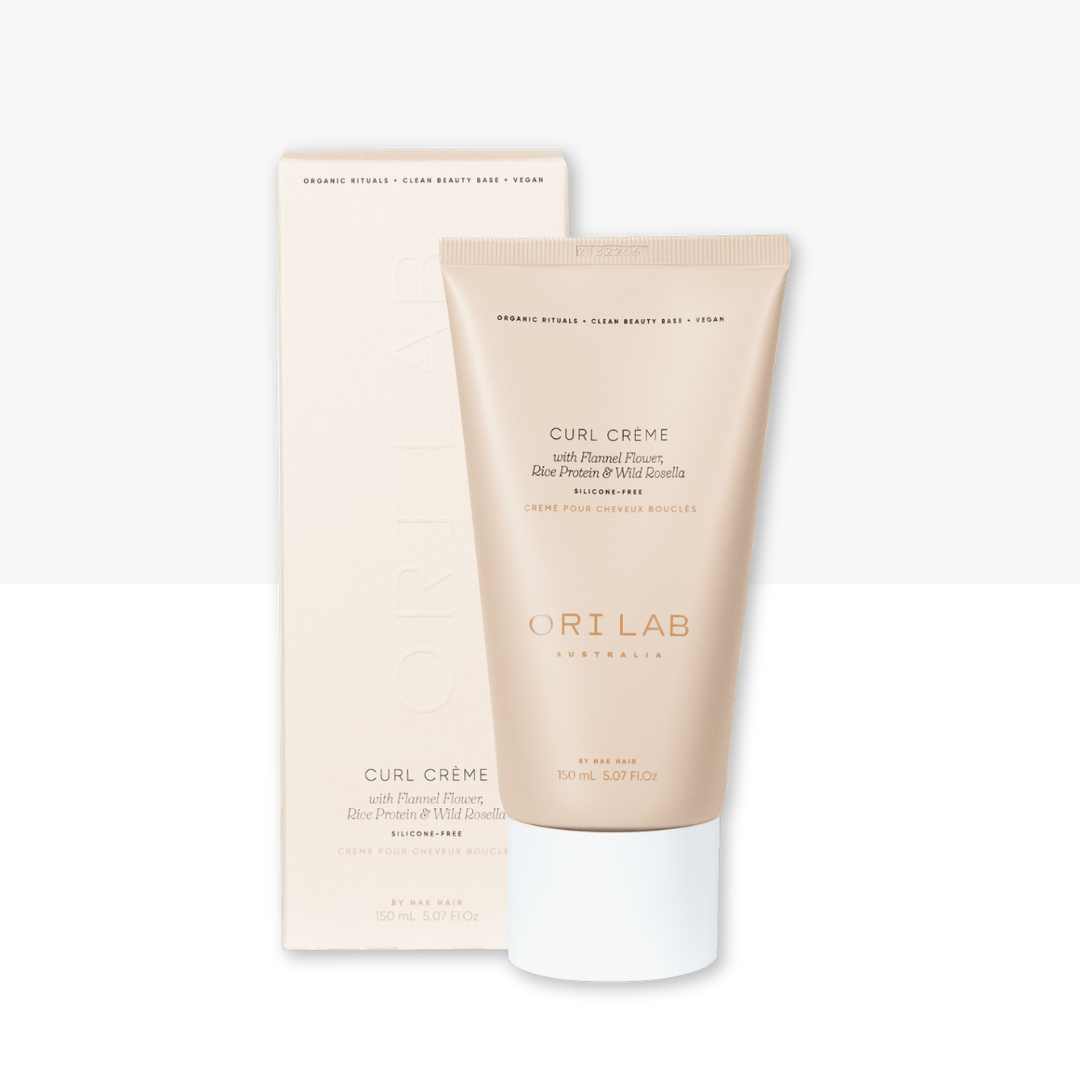 RITUAL •ORI Lab is designed for a luxurious everyday styling experience. Place a generous amount of Curl Crème onto the palm of your hand, gently tousle through the mid-lengths and ends. Distribute evenly and gently scrunch. Diffuse, leave to air dry or style as desired.