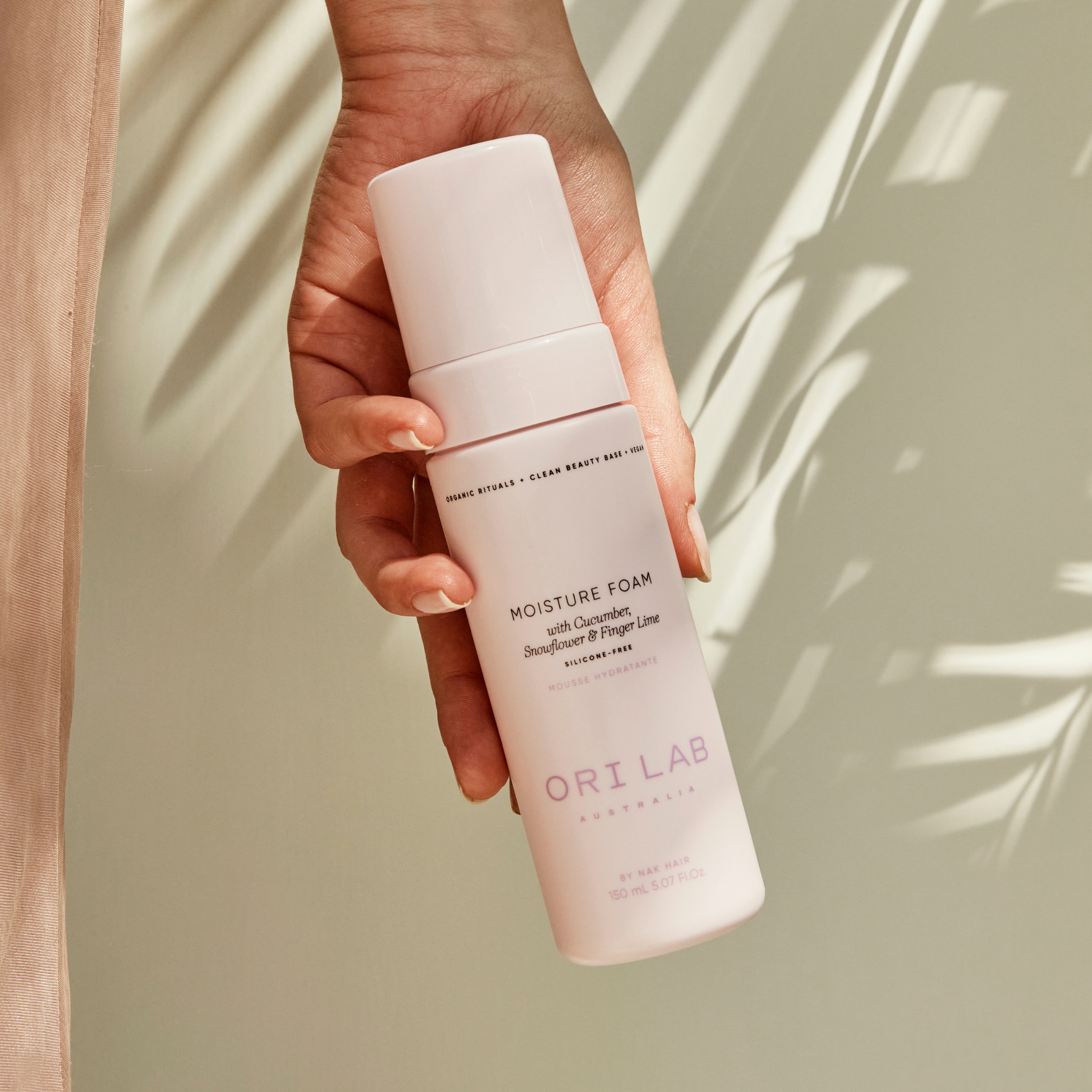 Ritual • ORI Lab is designed for a luxurious everyday styling experience. Place two to three pumps of Moisture Foam onto the palm of your hand, generously comb through the mid-lengths and ends of wet or dry hair. Gently scrunch and leave to air dry, or style as desired.
